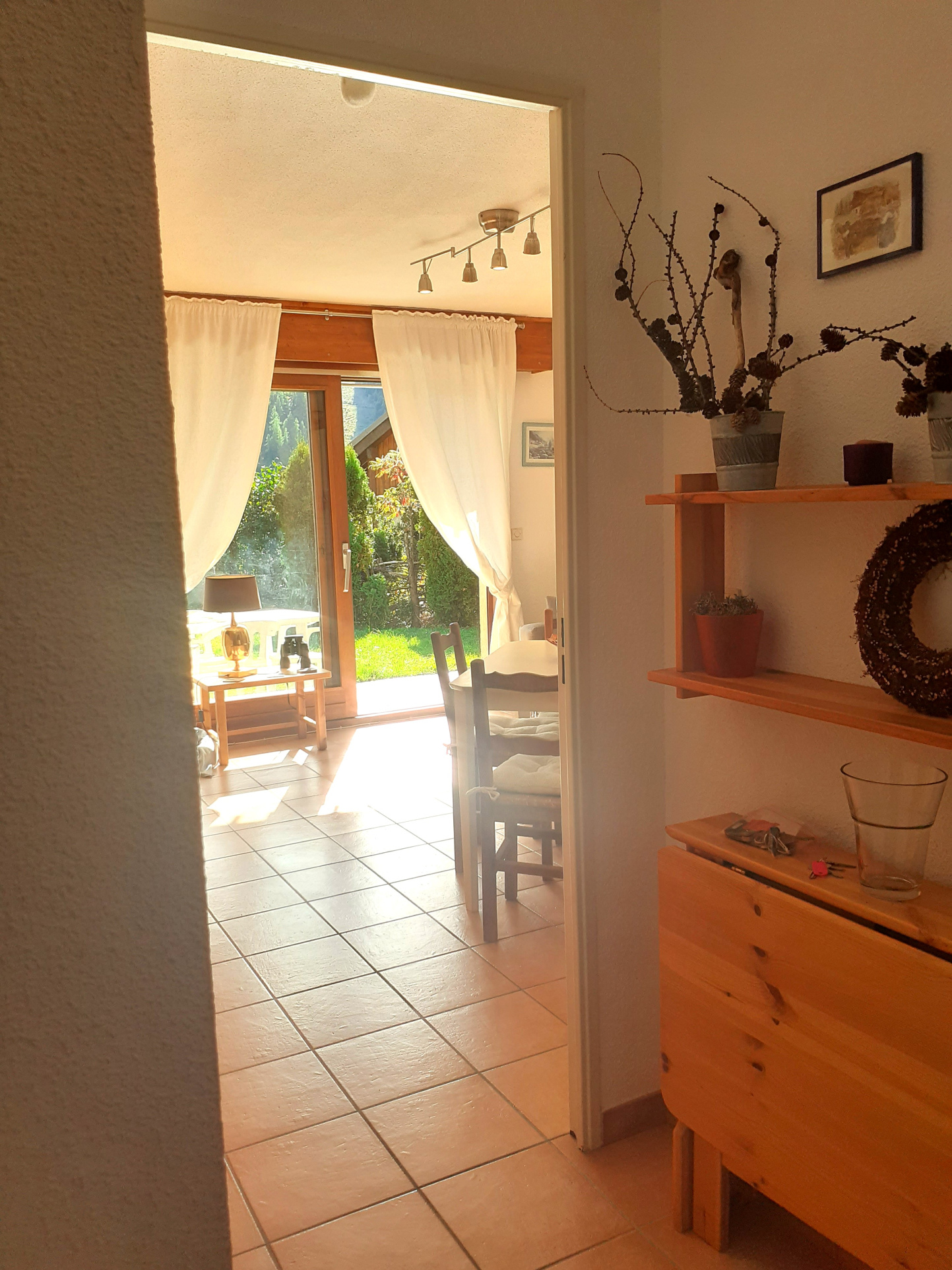 DANS PETITE RESIDENCE BIEN ENTRETENUE APPARTEMENT 3 PIECES ENTIEREMENT RENOVE AVEC TERRASSE ET JARDIN DEGAGEMENT, SEJOUR, COIN CUISINE, SALLE DE BAINS, WC INDEPENDANT, PLACARD BUANDERIE , UNE CHAMBRE, UNE CABINE, CAVE ET CASIER A SKIS. PARKING PRIVE